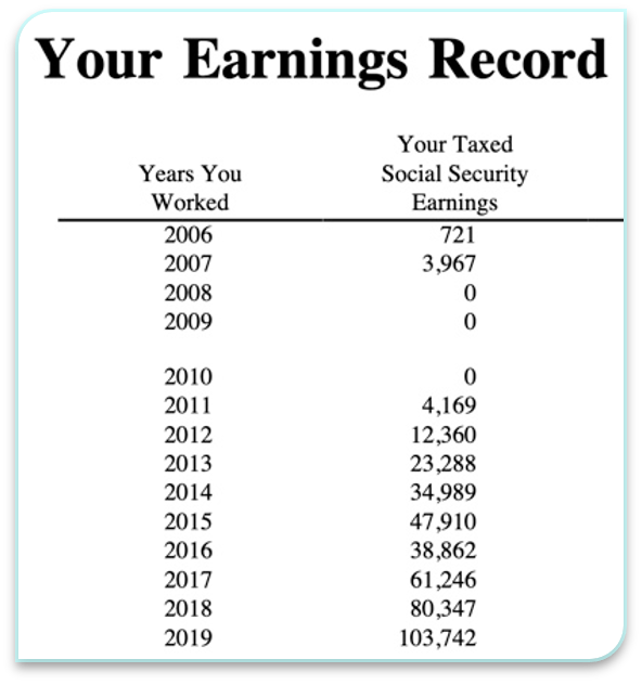 This is my personal social security earnings statement. Pay attention to the upward trajectory. This can be you!